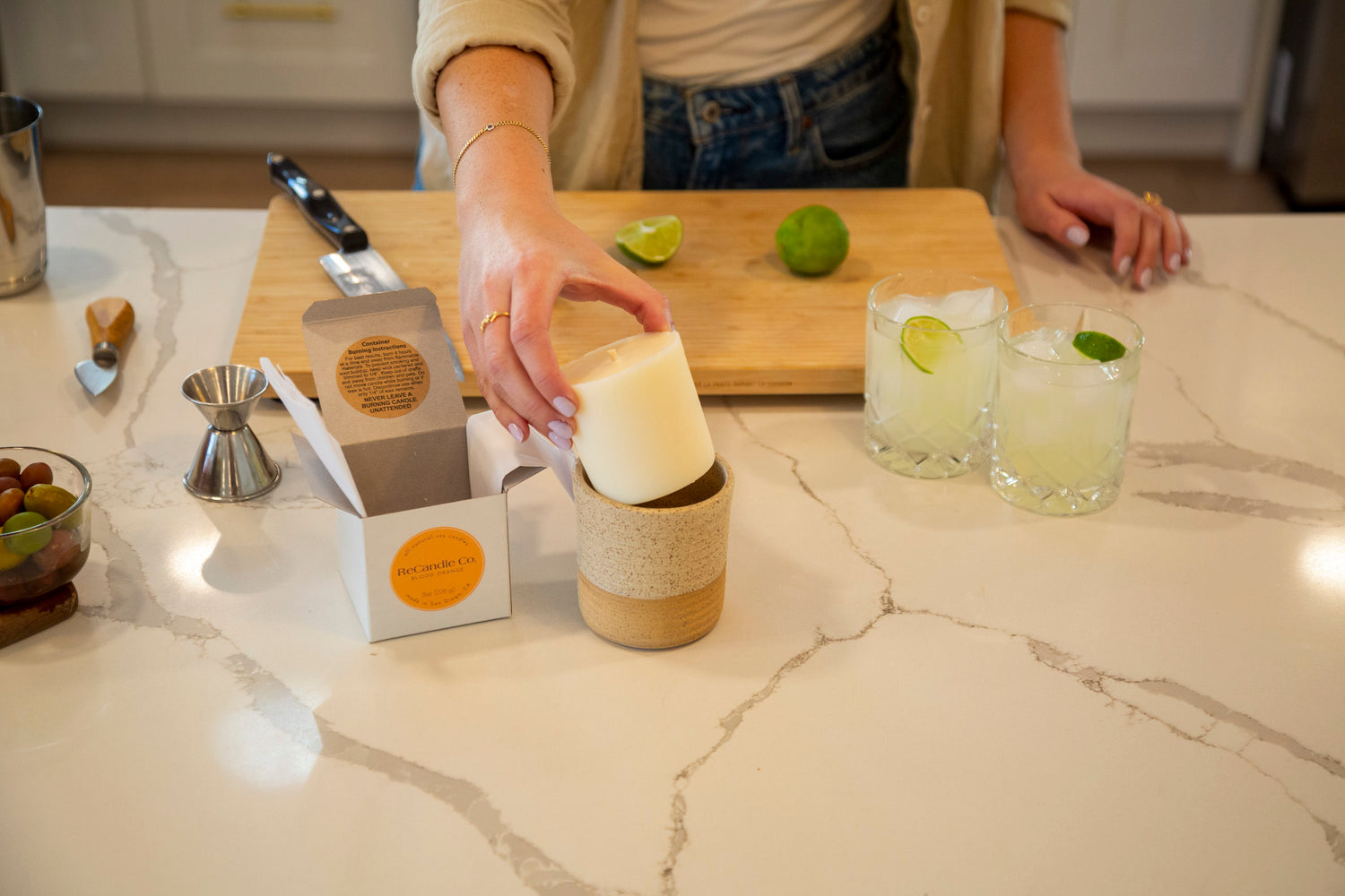Purposefully designed for refilling, our custom formulated soy wax easily detaches from the jar walls once the candle has finished burning. Press against any remaining wax, and watch as it releases from inside the jar. The wax won't stick to the sides like other candles, allowing fuss-free scent changes and a zero waste candle experience.